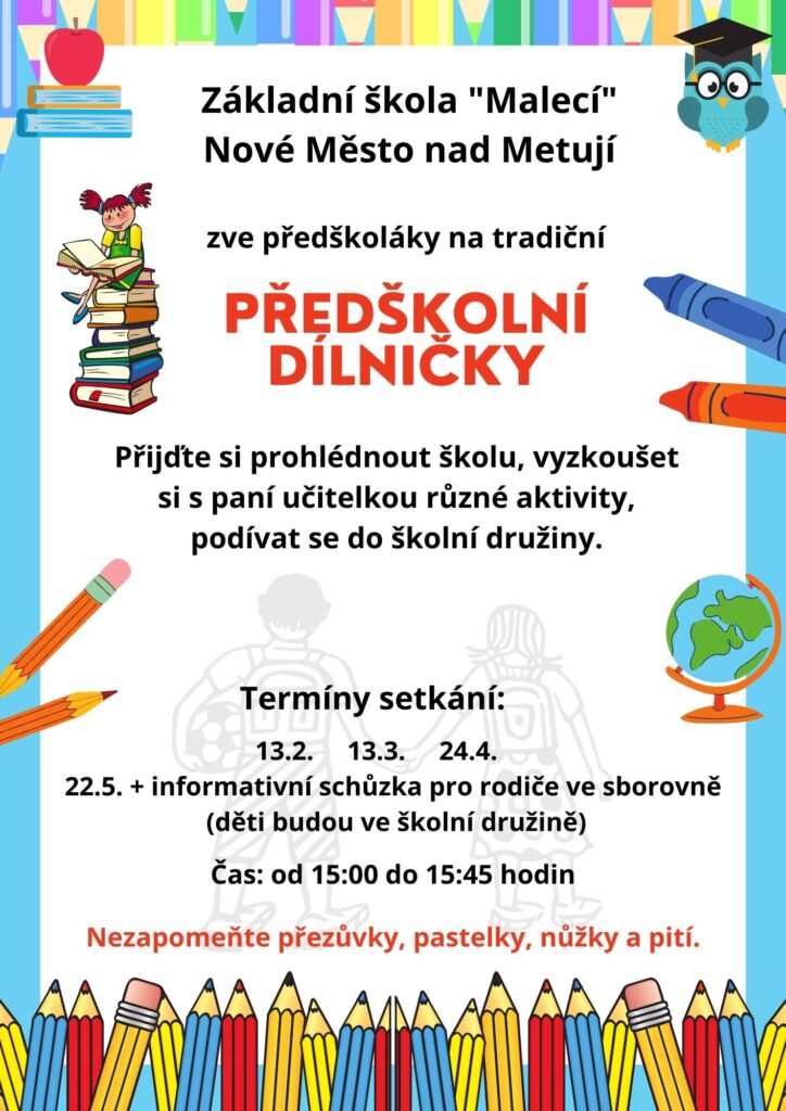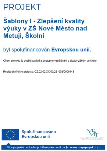 Na pátek 9. 5. 2025 vyhlašuji z provozních důvodů pro žáky Základní školy, Nové Město nad Metují, Školní 1000 ředitelské volno. Školní družina není v provozu. Žáci se…